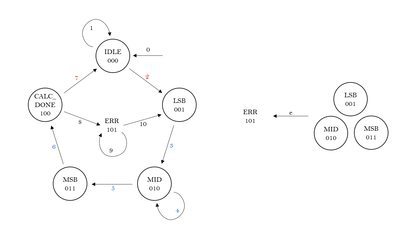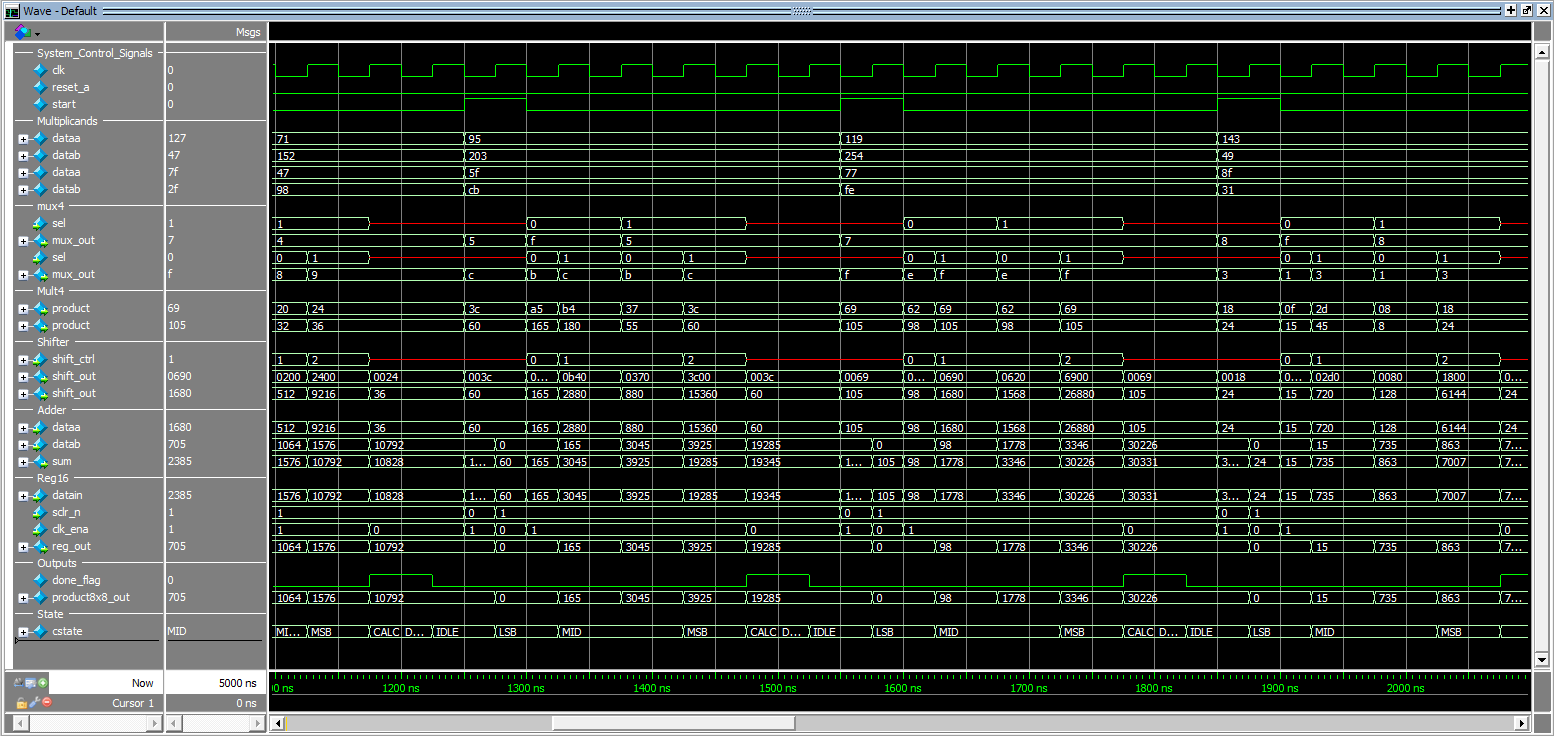 설계한 카운터로 LSB, MID1, MID2, MSB 상태를 제어하고 start 신호로 연산의 시작과 끝을 제어한다.