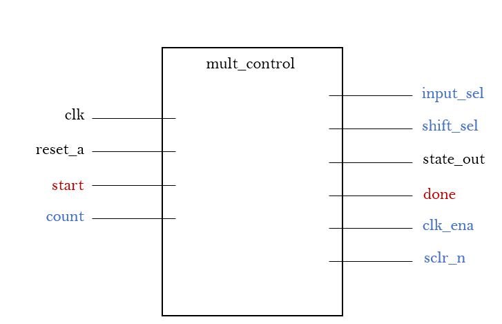 설계한 카운터로 LSB, MID1, MID2, MSB 상태를 제어하고 start 신호로 연산의 시작과 끝을 제어한다.