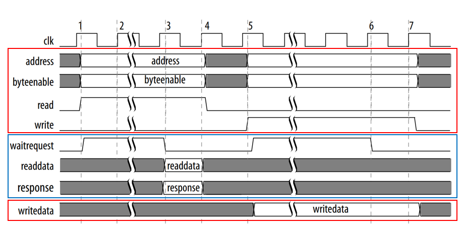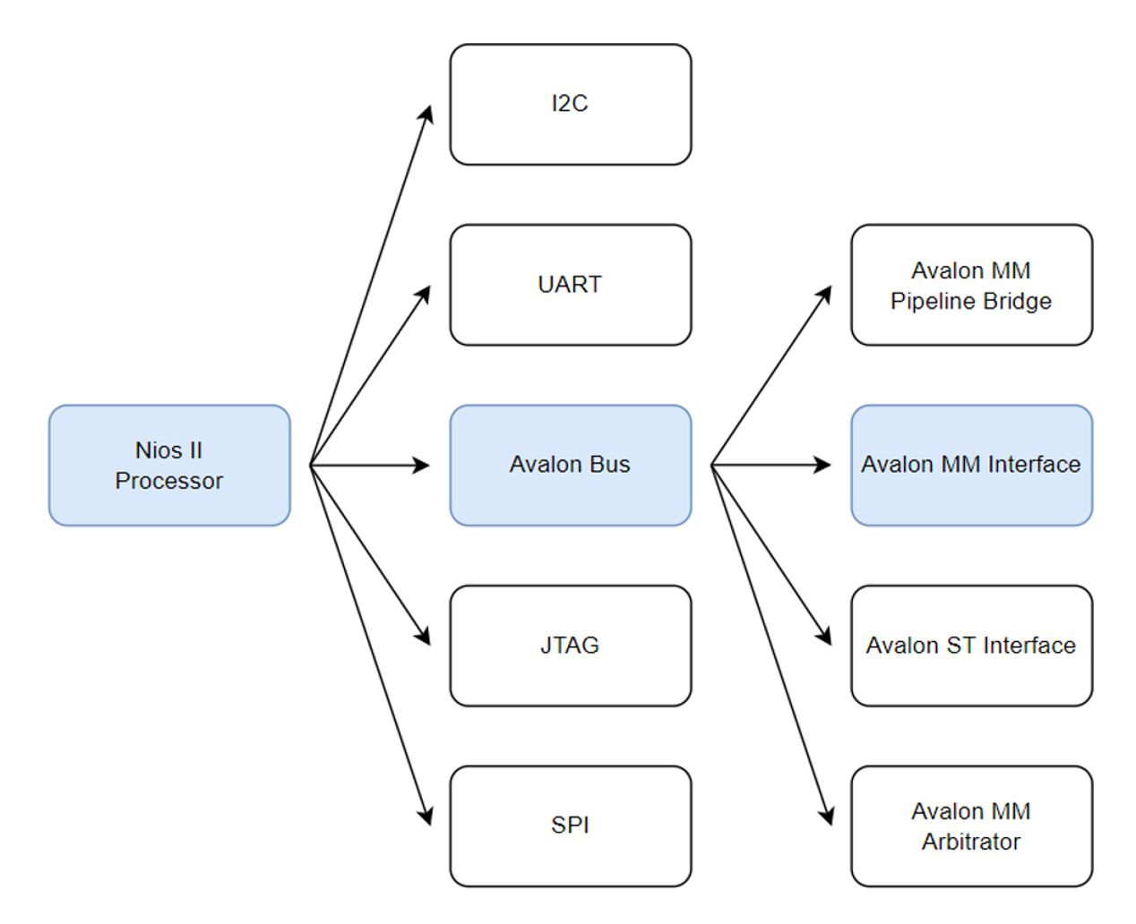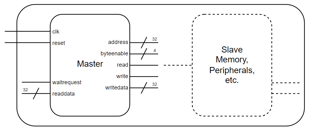 Avalon Interface는 Nios II Processor에서 사용하는 Interfaces 중 하나로 Intel FPGA 내 컴포넌트들의 연결을 통해 시스템 설계를 간소화해주는 프로토콜 및 데이터 형식을 의미한다. 그 중에서 Avalon Memory-Mapped Interface는 주소 기반 데이터의 read/write 동작을 구현하는 전형적인 Master-Slave Connection Interface를 말한다.