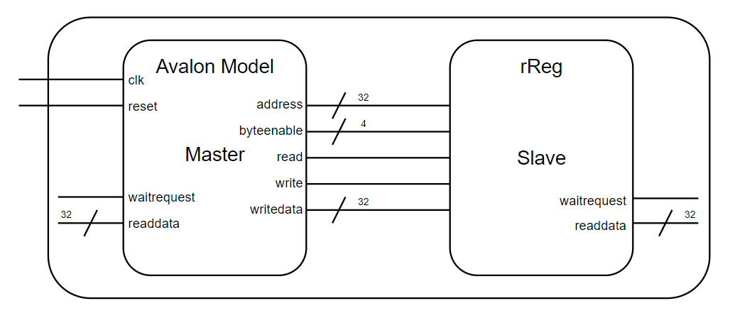 waitrequest, readdata 신호는 Slave에서 Master로 반환되는 신호이다. 하지만 Avalon Model에서는 Master로 신호를 반환할 Slave가 없기 때문에 레지스터를 추가하여 완전한 Master-Slave Connection을 구성하도록 하겠다.